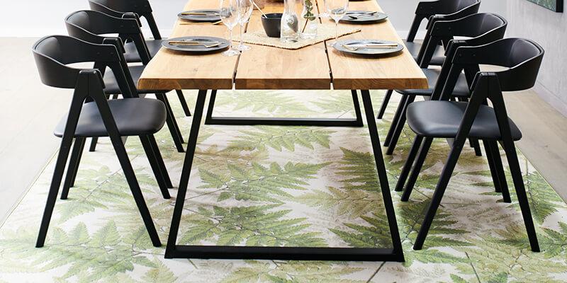 Ellers kan du i inspirationsfasen kigge dig omkring i dit hjem og identificere de forskellige zoner, som kunne være relevante at tænke tæpper ind i. Måske vil det pynte med et tæppe under spisebordet eller sofabordet, eller hvad med under sengen? Og måske vil det se flot ud med et velvalgt rundt tæppe under lænestolen eller loungestolen i stuen?
